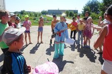 6-й день лагеря был посвящён весёлым играм. Была проведена эстафета с необычными заданиями. Особый восторг у детей вызвала игра «Гусеница».