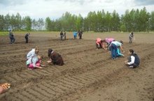 Сегодня дружно всей школой вышли на пришкольный участок, делали грядки, сажали лук, сеяли свеклу.