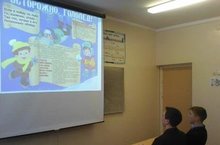 проведен для учащихся 7 класса. На основе презентации ребятам были предоставлены для решения ситуативные задачи, вопросы викторины. Кроме этого, была составлена памятка "Как вести себя при пожаре" -