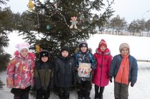 11 декабря учащиеся начальных классов вышли на школьный двор наряжать ёлочку. Вместе с учителями ребятишки повесили на ёлку мягкие игрушки и пели новогодние песни вокруг ёлочки.