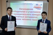 В Центре занятости населения Елабужского муниципального района состоялось чествование победителей VII муниципального конкурса «Славим человека труда!» по направлению «Печатный материал». Трое обучающихся нашей школы одержали победу в различных номинациях : Соловьева Камилла, ученица 7 класса, номинация «Мастер своего дела», 3 место; Крутиков Максим, ученик 7 класса, номинация «Мастер своего дела», 2 место; Галеев Ислам, ученик 6 класса, номинация «Я выбираю рабочую профессию», 2 место. Обучающиеся награждены памятными подарками и денежными сертификатами. Молодцы, так держать!