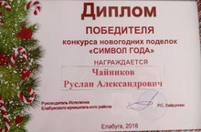 Поздравляем с победой ученика 7 класса Чайникова Руслана в конкурсе новогодних поделок "Символ года", проводимый МКУ «Управление культуры ИК ЕМР»