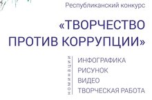 Стартовал ежегодный Республиканский конкурс творческих работ на антикоррупционную тематику «Творчество против коррупции» среди школьников, студентов и представителей работающей молодежи в возрасте до 30 лет. Участники конкурса могут представить свои работы в 4 направлениях: видеоролик, инфографика, рисунок и творческая работа.