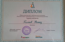 Поздравляем Галеева Риназа, ученика 11 класса, который получил диплом I степени в конкурсе "Один день нефтяника" в старшей категории (15-18 лет). Руководитель Галеева Л.Х.