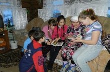 25.02.15 учащиеся 9 класса во главе с классным руководителем посетили ветерана тыла села Татарский Дюм-Дюм Фатихову Нурнису Фатиховну. Она очень обрадовалась нашему посещению и с удовольствием рассказала про трудные военные годы ее детства. На память мы сфотографировались и сняли на видео ее короткий рассказ.