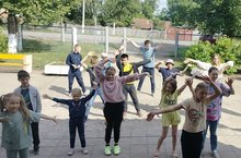 В рамках антинаркотического проекта "SaMoSтоятельные дети" все ребята из пришкольного лагеря приняли участие в проведении флэш-моба "Будь здоровым! Танцуй!"