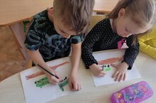 Воспитанники средней группы познакомились с военной техникой времен Великой Отечественной войны. Они изучили изображения техники и нарисовали ее для выставки в раздевалке группы.