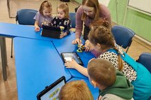 12 нче балалар бакчасының зурлар төркемендә тәрбияләнүчеләр фәнни Коллаборация Йортындагы дәрестә булдылар. Дәреснең темасы: "Программалаштыруны өйрәнү". Балалар роботлар турында күп мәгълүмат белделәр, үзләре компьютерда роботлар хәрәкәте өчен программалар төзергә өйрәнделәр. -