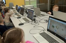 Воспитанники старшей группы детского сада N 12 посетители занятия в Доме научной коллаборации. Тема занятия была "Изучение программирования". Ребята узнали много нового о роботах, сами учились составлять программы для движения роботов на компьютере.