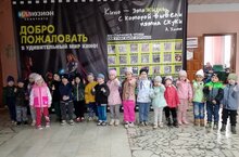 Воспитанники средней группы N 3 посетили кинотеатр Иллюзион и посмотрели мультфильм "Вперёд панда". По дороге они зашли в Сквер Епанешникова А. Н. к бюсту героя России у школы N 3.