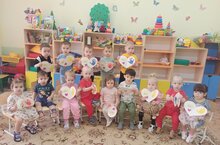 Воспитатели первой младшей группы №1 в рамках «Недели психологии» совместно с детьми сделали открытки-пожелания для мам. С целью создания благоприятного климата в группе и воспитания любви и уважения к мамам с ранних лет. Каждый ребенок сделал отпечаток своей ладошки на сердечке.