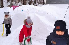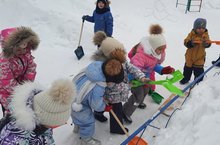 Больше всех зиме радуются дети. Ведь у них теперь много новых развлечений – можно кататься на санках с горок, барахтаться в сугробах, лепить снеговиков и устраивать поединки снежками. Но у малышей прибавится еще одна забота – брать на прогулку лопатки. После снегопадов на участках появилось много снега, дошколята средней группы с большой охотой помогают воспитателю расчищать дорожки. Таким образом, дети учатся уважать труд взрослых, приучаются к порядку и чистоте на участке детского сада у них формируется желание добиваться результата. /