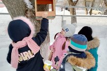 Зимой птицам приходится трудно. Природный корм (семена растений, рябина, насекомые) заканчивается или оказывается под снегом. Чтобы птицы не умерли от голода и холода, воспитатели с детьми старшей группы смастерили и развесили вкусные кормушки. Ежедневно, во время прогулки дети подкладывают корм в кормушки, которые висят на участке, заодно знакомятся с разновидностью зимующих птиц, повадками, чем их правильно подкармливать, развивают познавательные навыки, знакомятся с окружаюшим миром. /