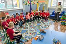 Детский сад №35 "Лейсан" в рамках проекта по профориентации "PROбудущее с детства" познакомили воспитанников детского сада №12 "Солнышко" с профессией "Инженер-робототехник, специалист в IT".