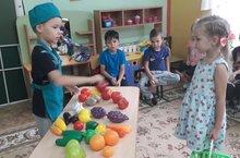 Вчера в старшей группе прошёл тематический день по теме «Овощи, ягоды и фрукты-витаминные продукты». Были проведены беседы, дидактические и сюжетно-ролевые и театрализованные игры по теме. С помощью развивающих мультфильмов дети узнали какие витамины содержатся в овощах и фруктах. Итогом дня стало изготовление детьми аппликаций и поделок и организация выставки на тему дня. /
