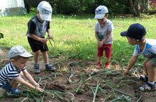 Безнең кечкенә бакчабызда урып-җыю башлана. Кече төркем балалары суган уңышын җыйдылар. Язын алар суган утыртканнар иде, җәй дәвамында аның үсешен күзәттеләр һәм хәзер логик нәтиҗәгә – уңыш җыюга килделәр. Менә шулай безнең балалар әйләнә-тирә дөньяны танып, хезмәткә өйрәнә.