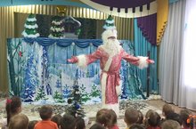 Декабрь. Снег. Украшенные группы. Отовсюду веет наступающим праздником... Вот и к нам в садик приехал Дед мороз из Альметьевского куколного театра с новой музыкальной сказкой “Волшебная сметанка”. Дети с удовольствием смотрели театр сопереживая и радуясь вместе с героями сказки. Подпевая и восторженно хлопая в ладоши смотрели представление. Дети с удовольствием провели время, получив заряд радости и доброты. /