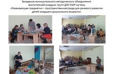 В нашем детском саду прошло заседание муниципального методического объединения воспитателей младших групп ДОУ ЕМР на тему "Развивающая предметно - пространственная среда для речевого развития детей младшего дошкольного возраста " с целью обобщения опыта работы в данном направлении.