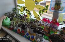 Воспитанники старшей группы №3 учатся ухаживать за комнатными растениями.