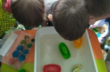 Эксперимент можно провести во время любой деятельности. Например, ребёнок рисует, у него кончилась зелёная краска. Предложите ему попробовать сделать эту краску самому. Посмотрите, как он будет действовать, что будет делать. Не вмешивайтесь и не подсказывайте. Догадается ли он, что надо смешать синюю и желтую краску? Если у него ничего не получиться, подскажите, что надо смешать две краски.