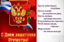 Коллектив Детского сада поздравляет всех мужчин и мальчиков с Днём защитника Отечества! Мы желаем вам силы, мужества и отваги. Пусть каждый ваш день будет успешным, каждый поступок — достойным, каждая идея — отличной, каждое слово — твёрдым, а каждое действие — уверенным! Желаем быть здоровыми, любимыми и непобедимыми!