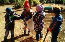 Уртанчылар төркеме балалары мәйданчыктагы коелган яфракларны чистартуда актив катнаштылыр. Алар көрәкләр ярдәмендә тәрбиячегә яфракларны капчыкларга тутырырга булыштылар һәм бу эштә бик зур тырышлык күрсәттеләр.