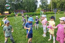 Җәй-күңелле бәйрәмнәр чоры. Нәкъ менә җәй көне балаларның ел буена сәламәтлек һәм яхшы кәеф заряды алу мөмкинлеге бар. Сабын куыклары-җиңел шарлар, Салават күпере төсләре белән тулган һава шарлары һәрвакыт елмаю һәм соклану уята. Сабын куыклары белән уйнау күңелле шөгыль кенә түгел, сәләмәтлек өчен бик файдалы да: балаларны дөрес сулауга өйрәтә, сөйләмне коррекцияләүгә ярдәм итә торган юнәлешле һава агымы булдыра. Зурлар төркеме балаларына һәм аларның әти-әниләренә күңелле бәйрәмдә актив катнашулары өчен зур рәхмәт