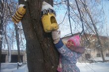Без кошларны кайгыртабыз, аларга җим салабыз. Килегез, кил, кошкайлар,безнең нәни дускайлар! -
