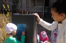 Рисует малыш на асфальте мелкамиЗеленую травку и дом.Деревья и солнце рисует мазкамиИ радость струится кругом.В старшей и подготовительной группах дети рисовали нашу планету, каким они хотят видеть. Свои рисунки старшая группа раздавала на улице микрорайона. Дети средней группы путешествовали по экологической тропе к березовой роще. Беседовали о белостволой красавицы весной, узнали о пользе березового сока, о способах его добычи без вретнида для дерева. Младшие дошкольники наблюдали за трудом взрослых: за уборкой на территории ДОУ, на цветниках, за пересадкой герани черенками. -
