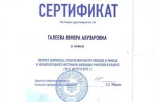 10 - 12 августа Елабуга на базе КФУ принимала гостей в рамках VI Международного Фестиваля школьных учителей. Слушателями мастер - классов были и наши воспитатели: Русакова И.В., Нагаева Г.Р., Галеева В.А. Венера Абузаровна приняла участие в мастер - классе и получила Сертификат. Поздравляем!