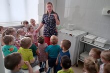Ребята побывали на кухне детского сада, где повар Хафиза Наилевна рассказала им об особенностях своей работы.