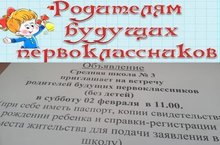 Родителям будущих первоклассников. Булачак беренче сыйныф укучыларының әти-әниләренә. 29.01.2019
