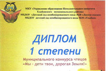 Поздравляем победителя и участников в муниципальном конкурсе чтецов «Мы – дети твои, дорогая Земля!» 29.03.2017