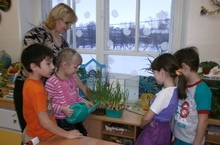 За окном лежит снег, а в детском саду №18 зазеленел "огород".