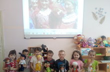 Среднюю группу «Росинки», посетила Бабушка- загадушка, с сундучком сюрпризов. В сундучке находились необыкновенные предметы, от которых загорались интересом и любопытством детские глаза. Бабушка рассказала ребятам о дружбе народов живущих в нашей стране, о многоцветии языкового фольклора. Показала сказки, в которых дети сами принимали активное участие - это кукольный театр «Курочка Ряба» и татарская сказка Г.Тукая «Глупый Зайчонок». Ребята рассмотрели кукол в национальных костюмах народов Поволжья, поиграли в народные игры и с интересом отвечали на вопросы викторины «Знаешь ли ты свой родной город».Находясь под впечатлением, ребята ещё долго обсуждали прошедший праздник родного языка.