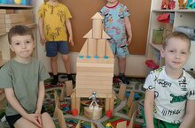 Воспитанники средней группы продолжают осваивать строительный материал "Бабашки". Так после проведенной беседы про Космодром, дети смогли его возвести из бабашек.