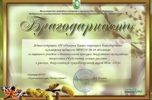 Администрация НП "Нижняя Кама" выразила благодарность коллективу педагогов нашего детского сада за активное участие в Региональном конкурсе декоративно-прикладного творчества "Чудо-елочка своими руками" в рамках Всероссийской природоохранной акции "Ель-2013".