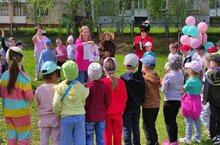В детском саду прошел веселый праздник — День защиты детей. На праздник к детям пришли герои мультфильмов. Крокодил Гена и Чебурашка пели и играли вместе с детьми в веселые игры. Чебурашка подарил детям воздушные шары и шоу мыльных пузырей.