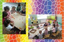 Дети закрепляли знания основных цветов: красный, синий, жёлтый, зелёный.
