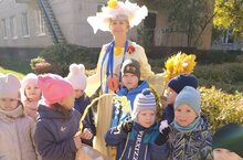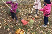 Көз-яфрак вакыты. 8-нче номерлы өлкән төркем балалары бик теләп яфракларны җыештыралар.
