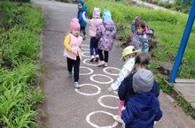 Покатился колобок по дорожке и очутился в детском саду №25 "Родничок". Йомры икмәк юл буйлап тәгәрәп китте. Бара торгач 25нче "Чишмәкәй" балалар бакчасына килеп житте.