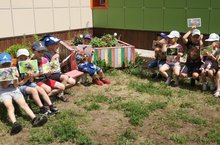 Безнең балалар бакчасы педагоглары иҗади шәхесләр. Алар балалар белән кызыклы чаралар оештырып кына калмыйча, балалар бакчасы территориясен дә төзекләндерәләр: чәчәкләр, клумбалар утырталар, вераннар бизиләр.