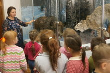 "Экскурсия по музею Природы" - так называлось занятие в подготовительной группе. Дети на настоящих экспонатах изучали природу и фауну нашего края в музее - заповеднике "Нижняя Кама".