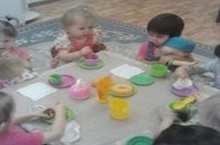 В 3 группе дети играли в сюжетно - ролевую игру "Угостим кукол чаем". Пусть игрушки дружат с нами, обижать мы их не станем, поиграем и потом, все на место уберем.