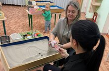 В нашем саду состоялась встреча родительского клуба "Живи играя". Педагог -психолог Степанова О. Н. с помощью песочной терапии погрузила родителей с детьми в волшебный мир, для осознания и трансформации реальности.