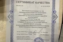 7 февраля 2020 г. в торжественной обстановке нашему детскому саду был вручен Сертификат качества, подтверждающий прохождение независимой оценки качества предоставляемых услуг. Экспертиза была проведена под председательством Моисеевой Л.В. - профессора, члена проблемного совета по экологическому образованию Президиума Российской Академии Образования, действительного члена Академии Педагогических и Социальных наук, действительного члена Международной академии наук педагогического образования, члена-корреспондента Российской Экологической Академии, Члена Общественной Палаты Государственной Думы. Экспертиза является дополнительной процедурой, наравне со ВСОКО обеспечивающей независимую оценку качества предоставляемых детским садом услуг по реализации как образовательной программы, так и дополнительных общеразвивающих программ. 2020 елның 7 февралендә тантаналы шартларда безнең балалар бакчасына күрсәтелә торган хезмәтләрнең сыйфатын бәйсез бәяләүне узуны раслаучы сыйфат сертификаты тапшырылды. Экспертиза, Россия Мәгариф академиясе президиумының экологик белем бирү буенча проблемалы советы әгъзасы, педагогика һәм социаль фәннәр Академиясенең хакыйкый әгъзасы, Халыкара педагогик белем бирү фәннәре академиясенең хакыйкый әгъзасы, Россия экология академиясе әгъза - корреспонденты, Дәүләт Думасының Иҗтимагый палатасы әгъзасы профессор Л.В. Моисеева рәислегендә үткәрелде. Экспертиза балалар бакчасы тарафыннан белем бирү программасын да, гомуми үсештәге өстәмә программаларны да тормышка ашыру буенча күрсәтелә торган хезмәтләрнең сыйфатын югары бәяләүне тәэмин итә торган өстәмә процедура булып тора.