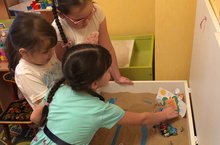 11 төркемдә "Кибеткә матур пирамидалар алып килделәр" дигән темага аппликация үткәрелде. Балалар турыпочмактан әйләнәне кисәргә һәм аларны иң зурдан иң кечкенәгә урнаштырырга өйрәнделәр.