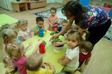 В рамках экологического воспитания, дети второй группы раннего возраста наблюдали за уходом комнатных растений. Познакомились со способами уход за комнатными растениями – поливом, протиранием пыли с листочков, предметами для работы. Ольга Александровна показала, как нужно правильно поливать растения - не поднимать высоко носик лейки, воду лить осторожно, под растение. Разучили новую пальчиковую игру «Герань» Экологик тәрбия бирү кысаларында, кече яшьтәге икенче төркем балалары бүлмә гөлләрен күзәттеләр. Бүлмә үсентеләрен карау ысуллары – су сибү, яфракларны сөртү, эш өчен предметлар белән таныштылар. Ольга Александровна үсемлекләргә ничек дөрес су сибәргә кирәклеген күрсәтте. Герань " дигән яңа бармак уенын өйрәнделәр.
