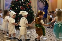 Ребятишки младшей группы №1с радостью встретили Деда Мороза. Веселье, детский смех, улыбки родителей, танцы, музыка, песни - окружали присутствующих на новогоднем утреннике. Кече төркем балалары Кыш бабайны шатланып каршы алдылар. Балалар көлүе, ата-аналарның елмаюлары, биюләр, музыка, җырлар-бәйрәм иртәсендә яңгырады.