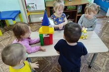 Для успешной адаптации воспитанников в яслях важно создать эмоционально- положительный настрой в группе. Этому способствуют многие факторы, в том числе и получение детьми разнообразных интересных впечатлений. Сегодня в рамках проведения в д/с N3 "Теремок" недели психологии в 1 младшей группе прошел тренинг по релаксации "бархатное поглаживание". В гости к детям пришёл Зайка, который рассказал как ему трудно живется в лесу одному, он боится всех и грустит. Дети совместно с воспитателем показали Зайке как можно успокоиться и получить заряд положительных эмоций, используя тактильное восприятие. Целью данного занятия было формирование понимания разнообразия эмоций, снижение напряжения и получение эмоционального и психологического комфорта.
